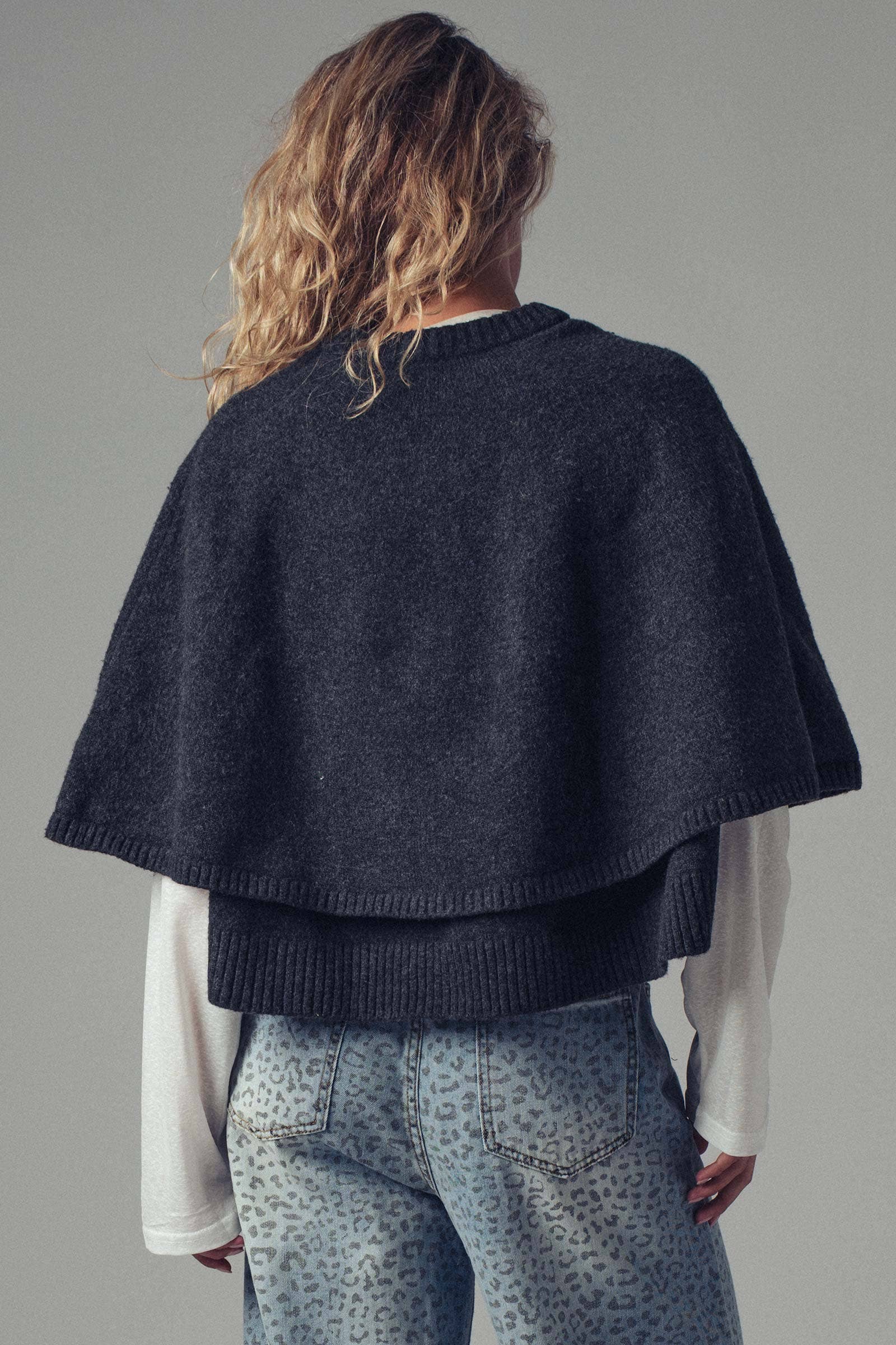 Effortless layering meets timeless style with the Button-Front Sweater Cape. Perfect for transitional weather, this piece adds dimension and warmth without the bulk. Throw it on over a dress, tee, or sweater for an instantly polished look that works from day to night. Wool blend.